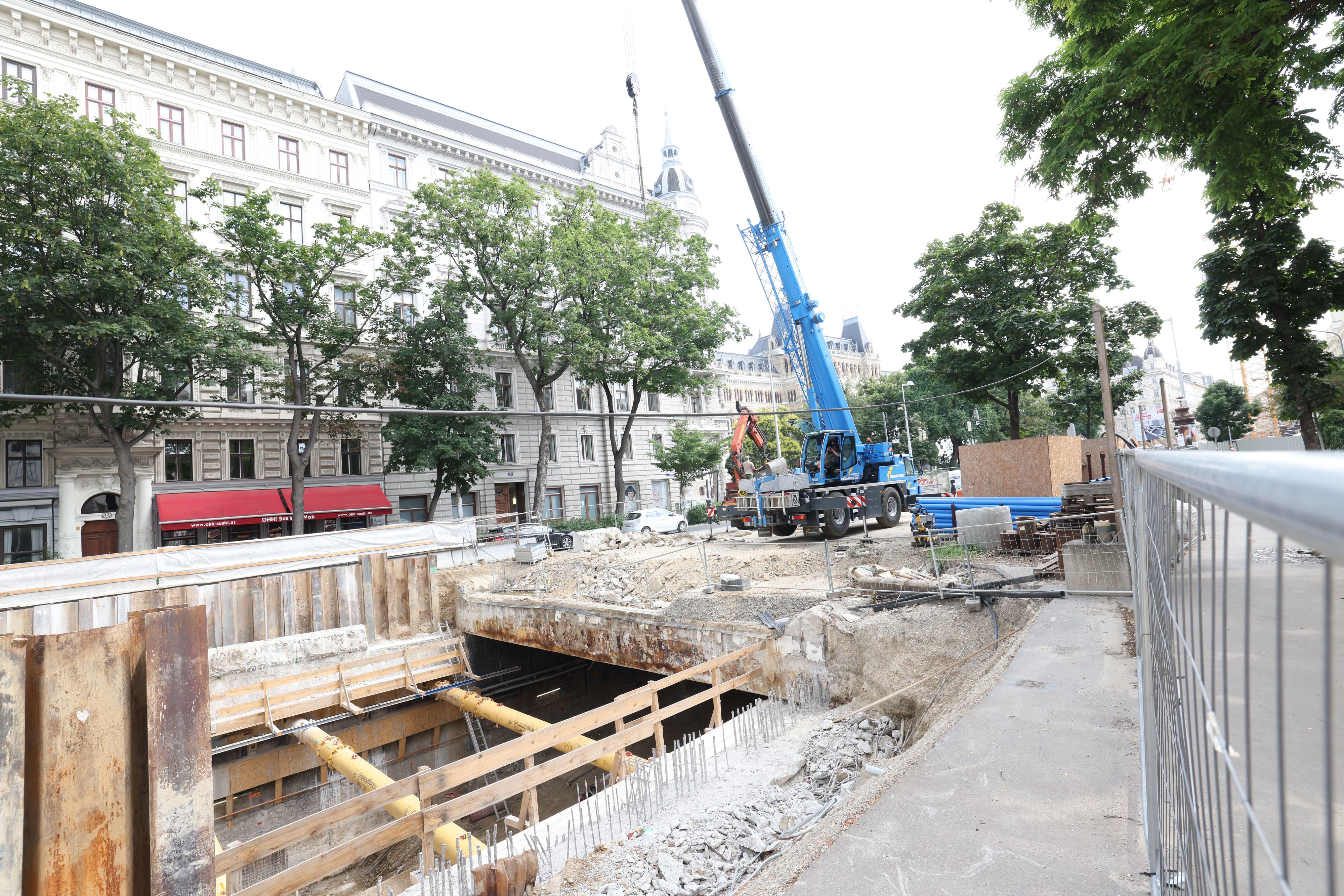 An der zukünftigen Öffi-Knotenstation U2/U5-Rathaus starten die ersten Tunnelbauarbeiten für die U2-Strecke von Schottentor zum Matzleinsdorfer Platz.