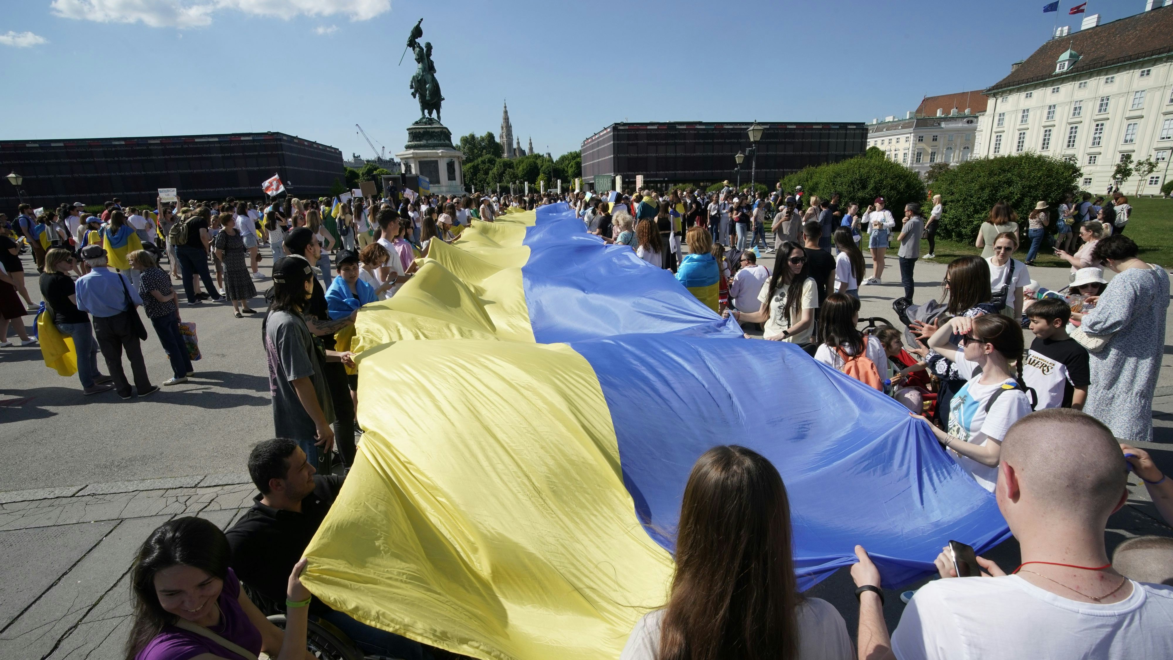 Am Sonntag versammelten sich Teilnehmer zum "Marsch zur aktuellen Situation in der Ukraine" in der Wiener Innenstadt.