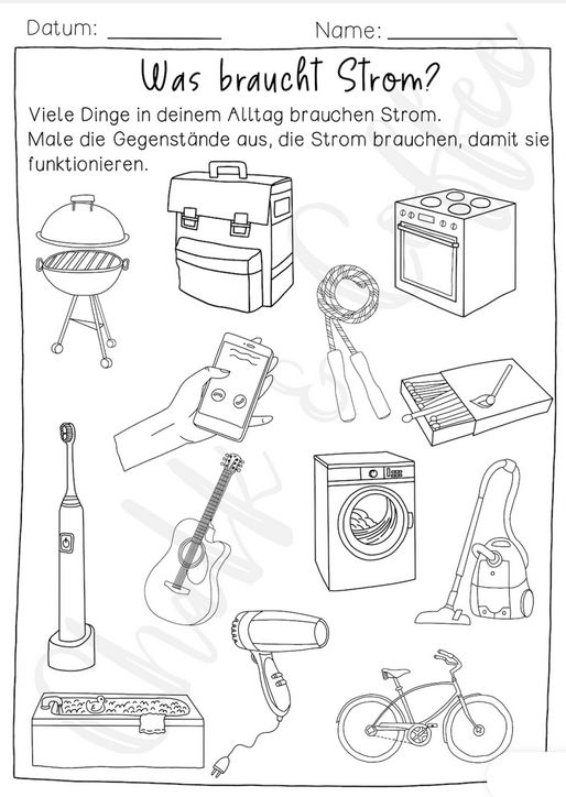Arbeitsblatt "Was braucht Strom"
