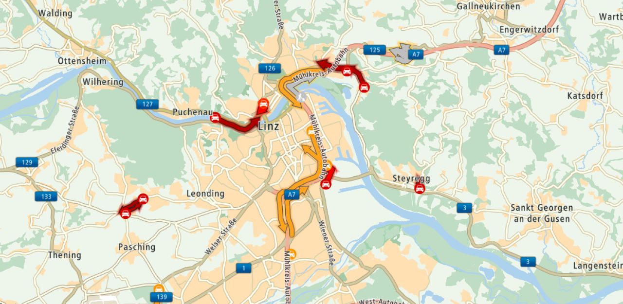 Drei Unfälle sorgten für Mega-Staus in Linz.