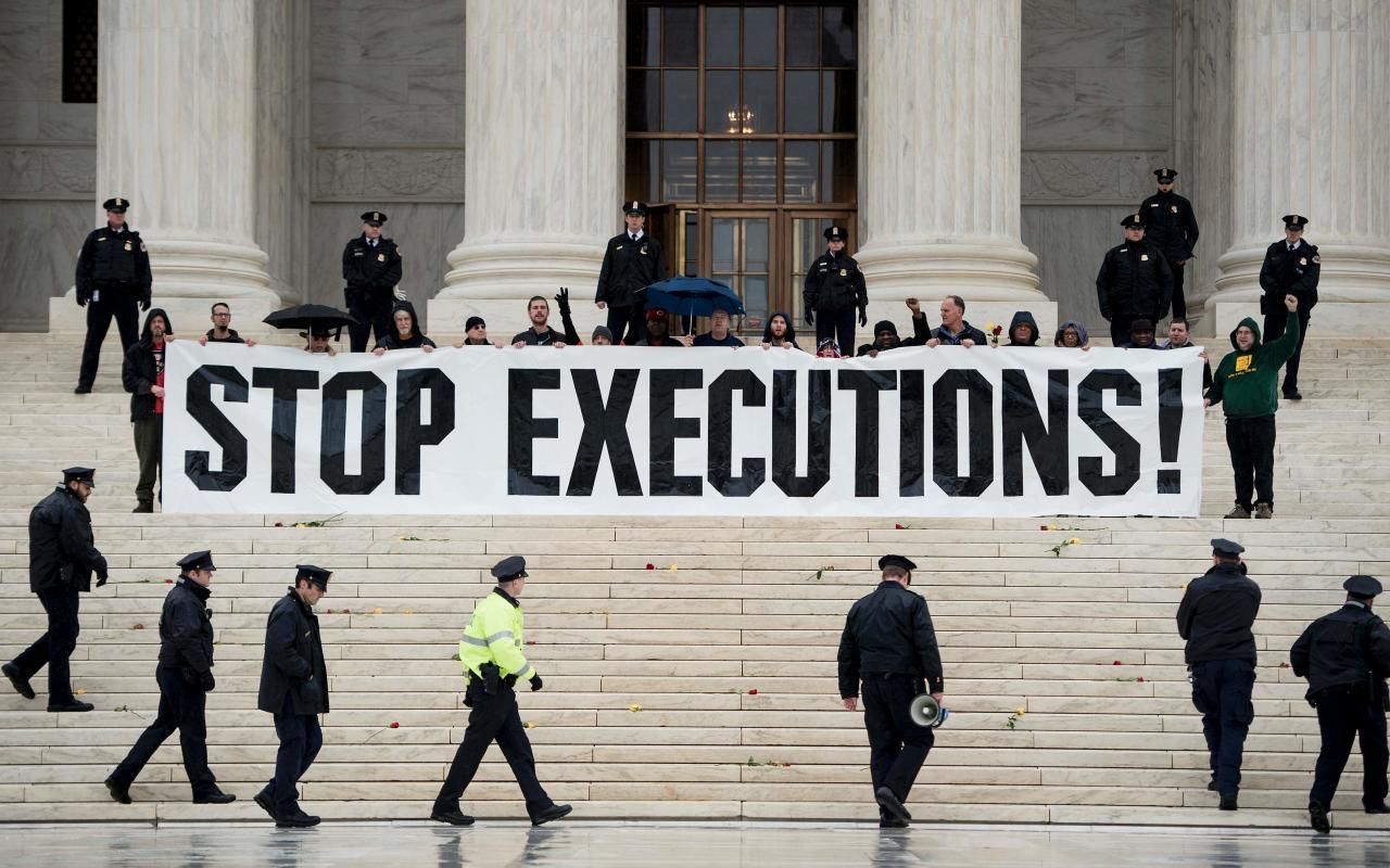 Aktivisten protestieren gegen die Todesstrafe vor dem Obersten Gerichtshof der USA in Washington D.C. Archivbild, 2017.