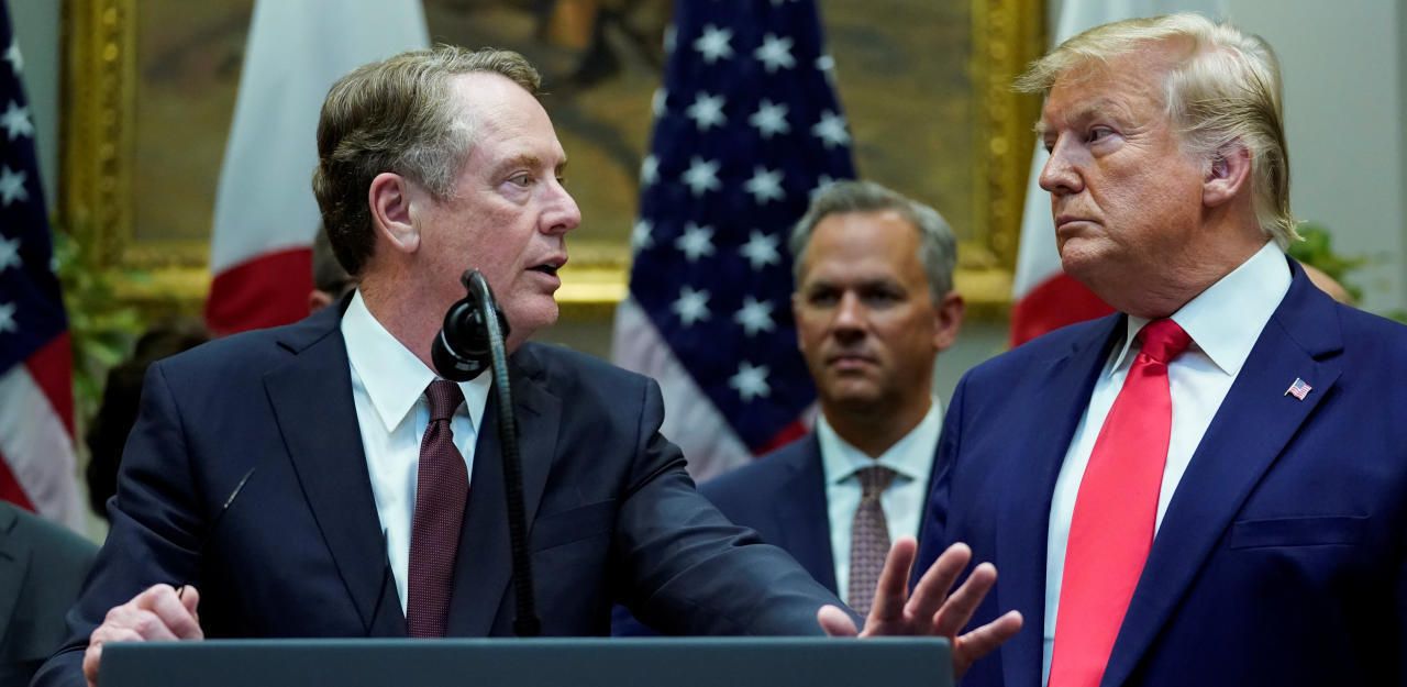 Der US-Handelsbeauftragte Robert Lighthizer mit US-Präsident Donald Trump