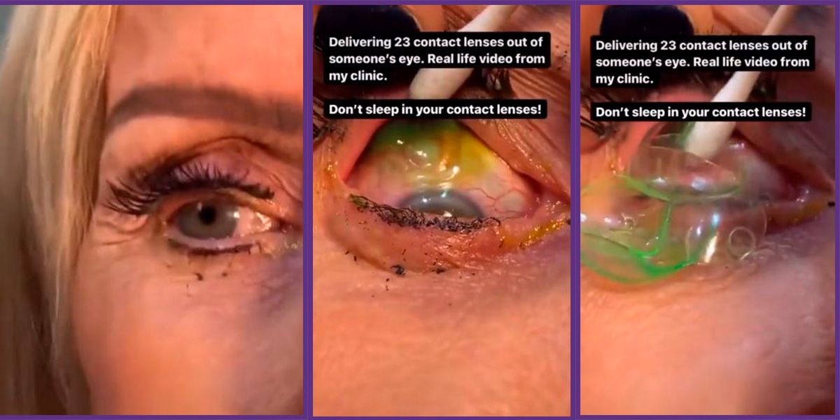 Die Ärztin kann nicht glauben, wie viele Linsen sie hinter dem Auge der Patientin hervorholt.