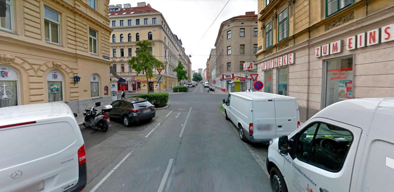 Blick aus der Kohlgasse auf die Kreuzung mit der Arbeitergasse in Wien-Margareten.