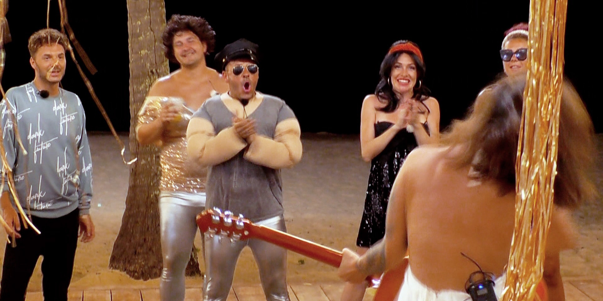 So unbeschwert kann TV-Zickerei sein: Im "Kampf der Realitystars"-Finale feiern die verbliebenden Kandidaten noch einmal gemeinsam, bevor es zur Entscheidung kommt - (v.li.) Sam Dylan, Kevin Pannewitz, Willi Herren, Georgina Fleur, Melissa Damilia, Kate Merlan.