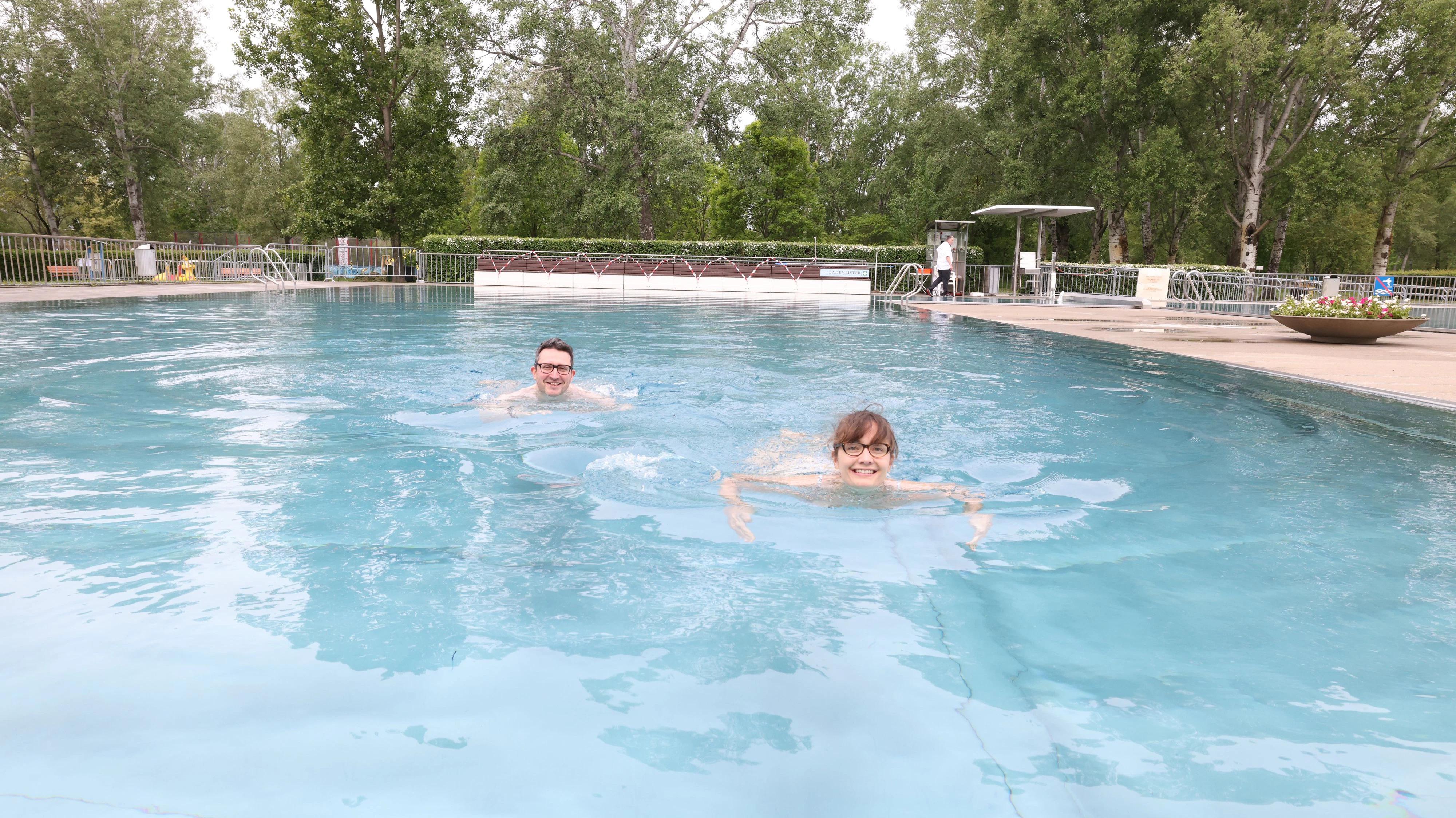 Kaum ist nach dem Corona-Winter wieder offen, sind Tabea (31) und Michael (42) auch schon die Ersten die im Wiener Gänsehäufel trotz wechselhaftem Wetter in den Pool springen.
