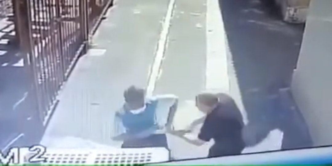 Der Axt-Angreifer (l.) wurde von einem Wachmann entwaffnet.