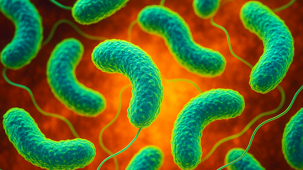 Klein, aber lebensbedrohlich: So stellt sich die KI die fleischfressenden Bakterien namens "Vibrio vulnificus" vor.
