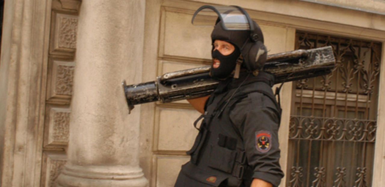Ein Beamter der WEGA mit einem Ramme.