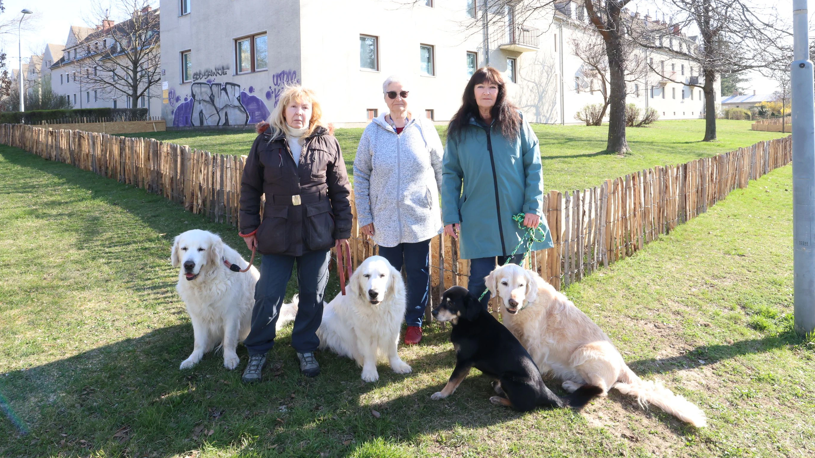 Gemeinsam mit ihren Nachbarinnen und den Hunden ist Silvia H. (re.) täglich in der Gegend unterwegs. Sie sorgt sich um die Feldhamster.
