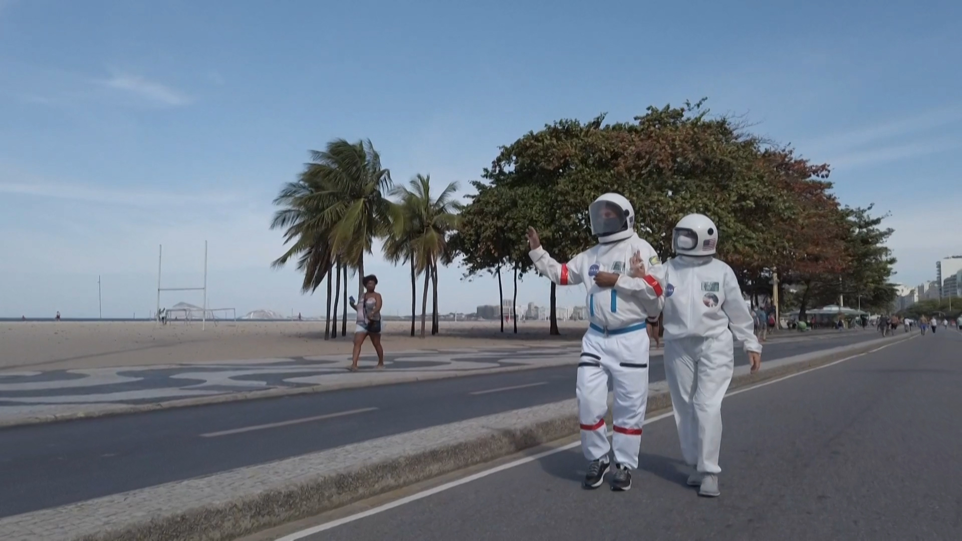 Tercio und Alicea Gaudino in ihrem Raumfahrer-Aufzug