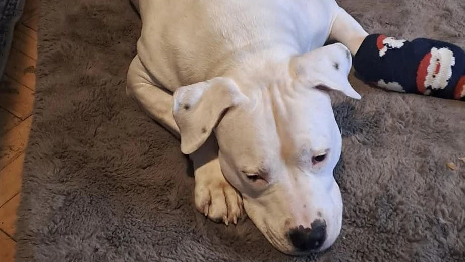 Der niedliche Dogo Argentino hat sich bisher immer vorbildlich verhalten.