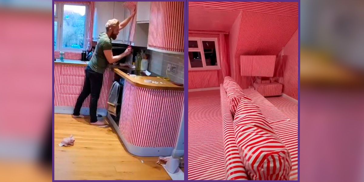 Tom Hooker liebt Weihnachten – und verpackte seine Wohnung als Geschenk.