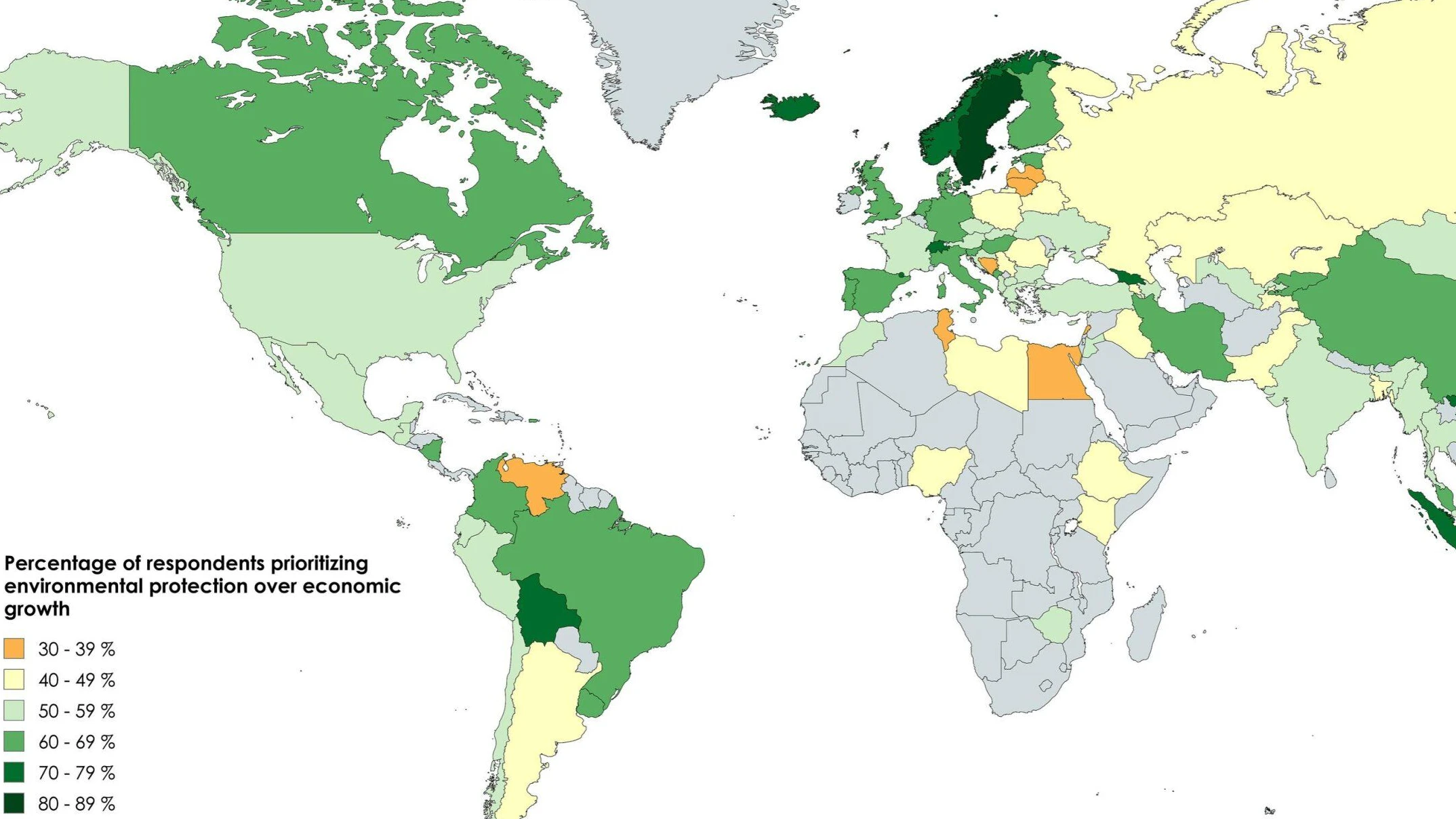 Prozentualer Anteil der Priorisierung von Umweltschutz gegenüber Wirtschaftswachstum nach Ländern