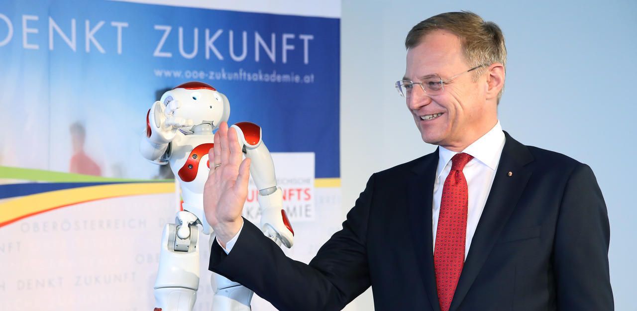 LH Thomas Stelzer (im Bild mit Roboter Nao) im großen Interview mit "Heute".