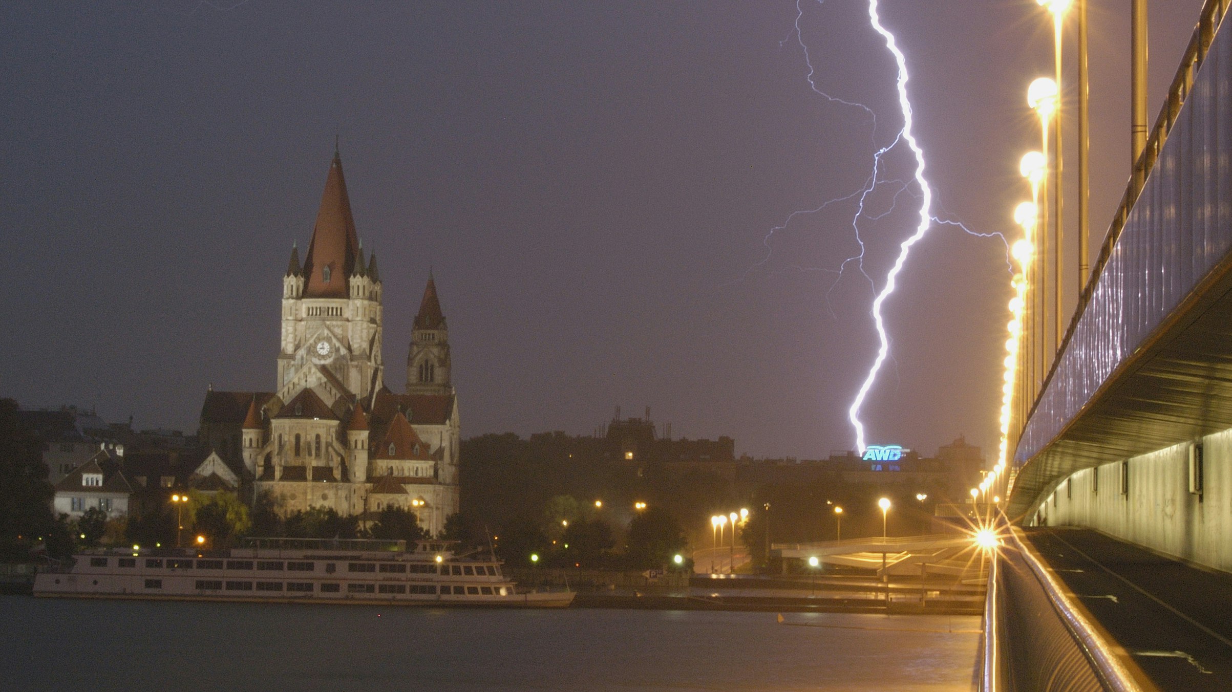 Gewitter bei der Reichsbrücke in Wien. Archivbild