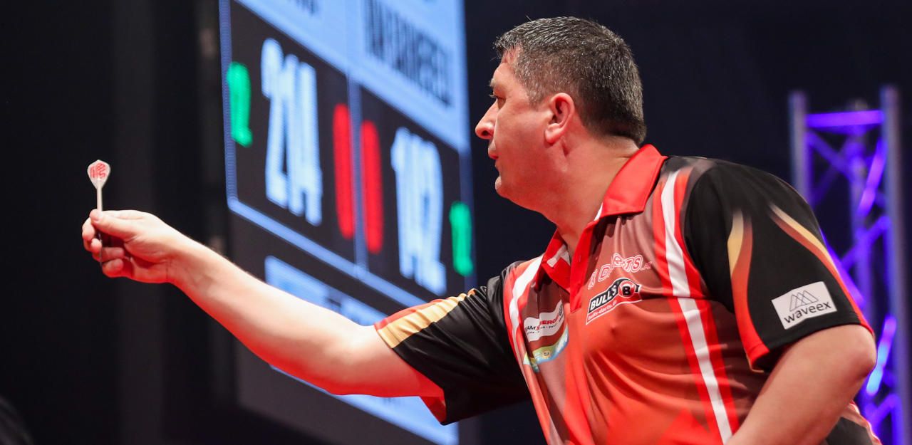 Mensur Suljovic bei den Austrian Darts Open im Mai