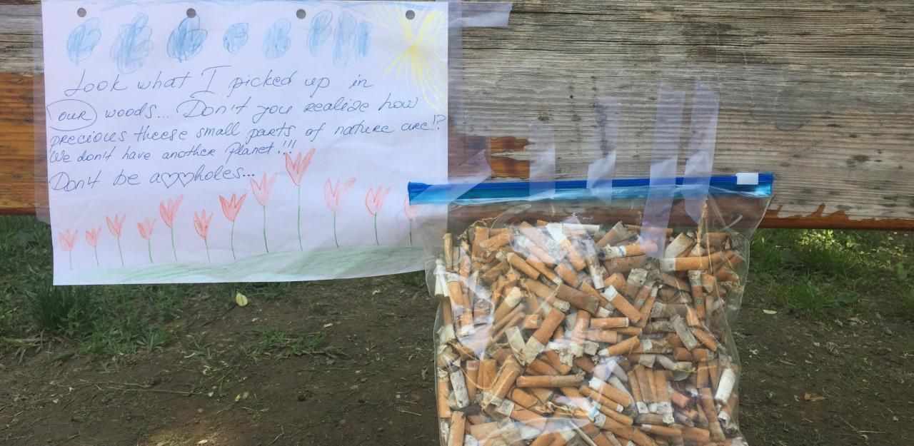 Mili (38) und ihr sechsjähriger Sohn sammelten zwei Wochen lang auf Grünflächen im Prater Zigarettenstummel auf.