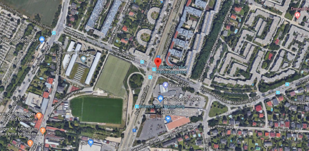 Der Unfall passierte bei der Kreuzung Brünner Straße mit der Hanreitergasse