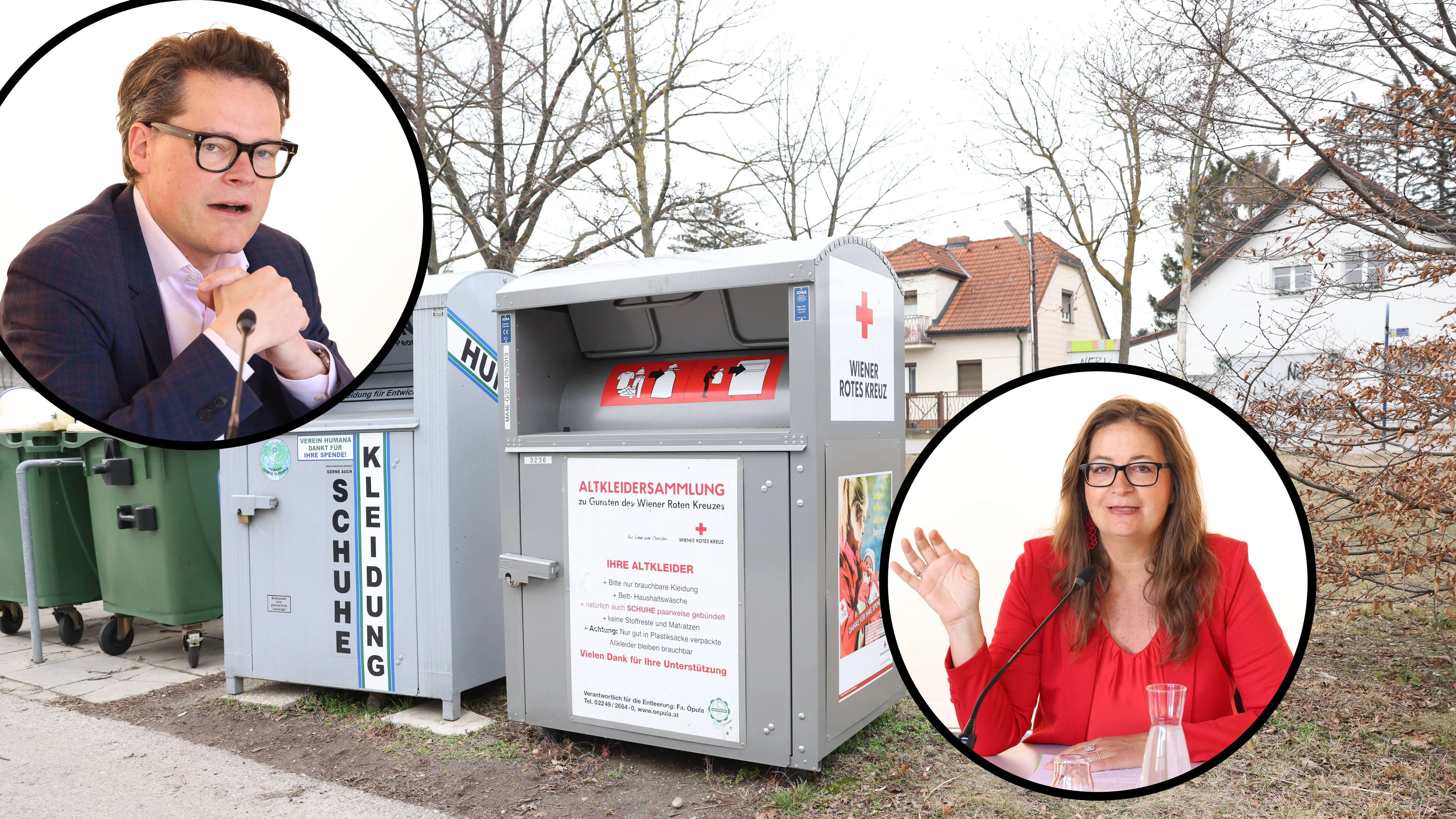 Klimastadtrat Jürgen Czernohorszky und Planungsstadträtin Ulli Sima gehen gegen Müllprobleme aufgrund von Altkleiderboxen vor.