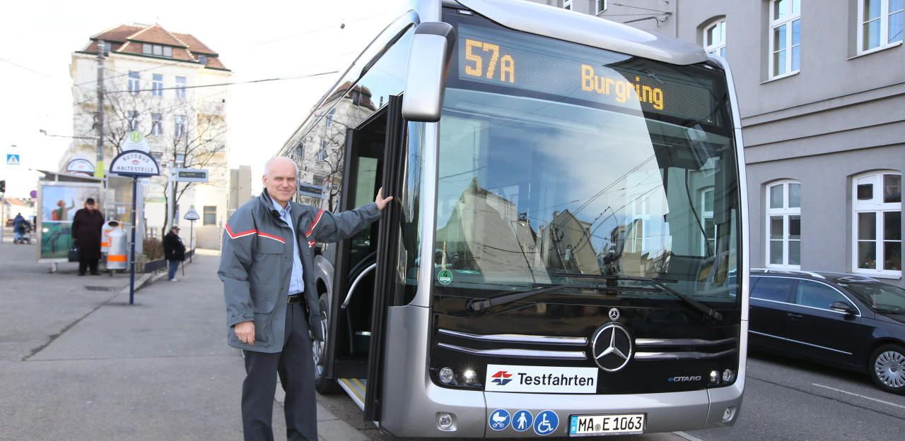 Bus-Lenker Peter Tesar (56) testet den neuen eCitaro von Mercedes.