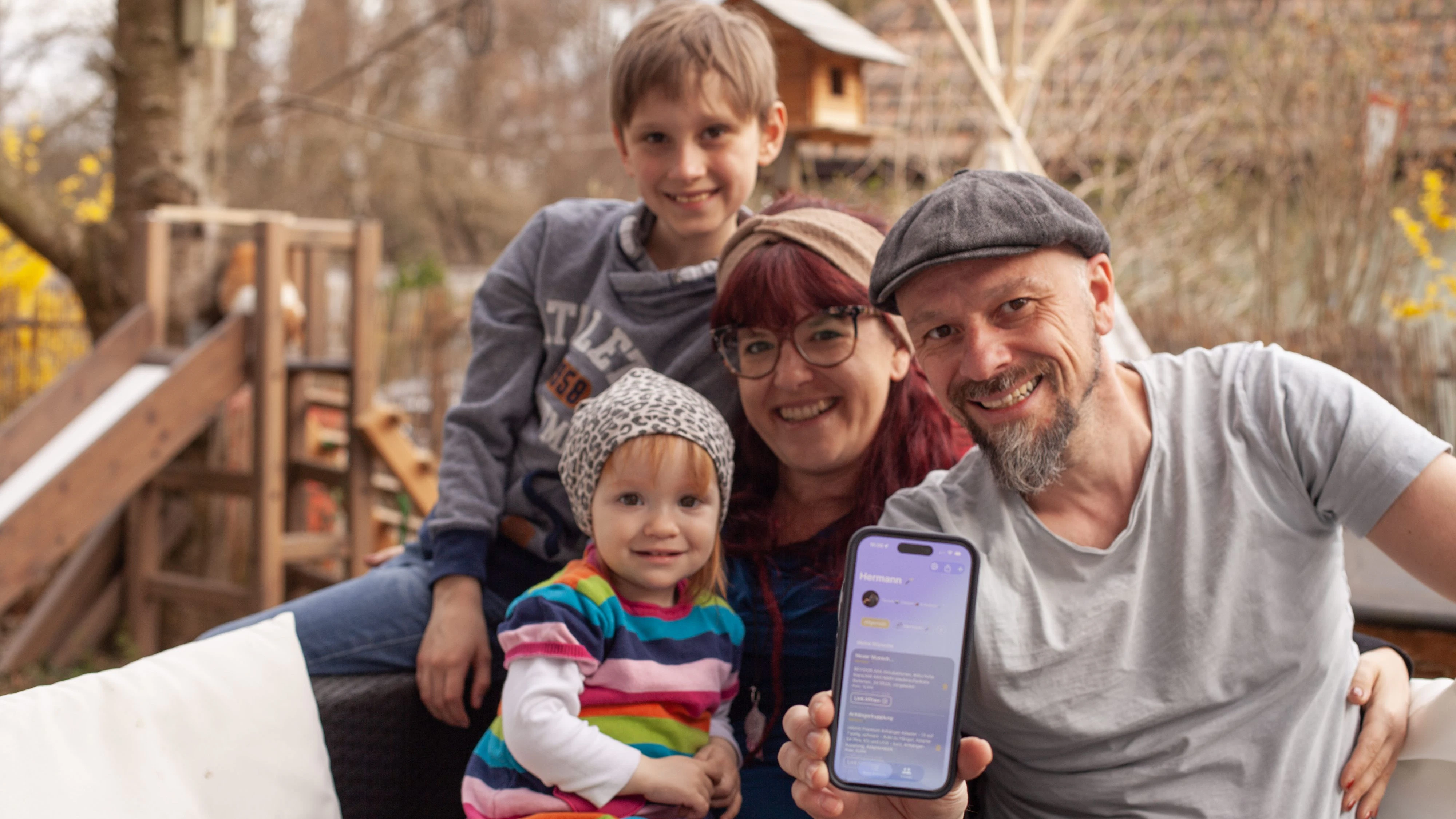 Freude an der neuen App: Hermann Rauschmayr, Franziska Kronsteiner, Hermine (2) und Emil (11).