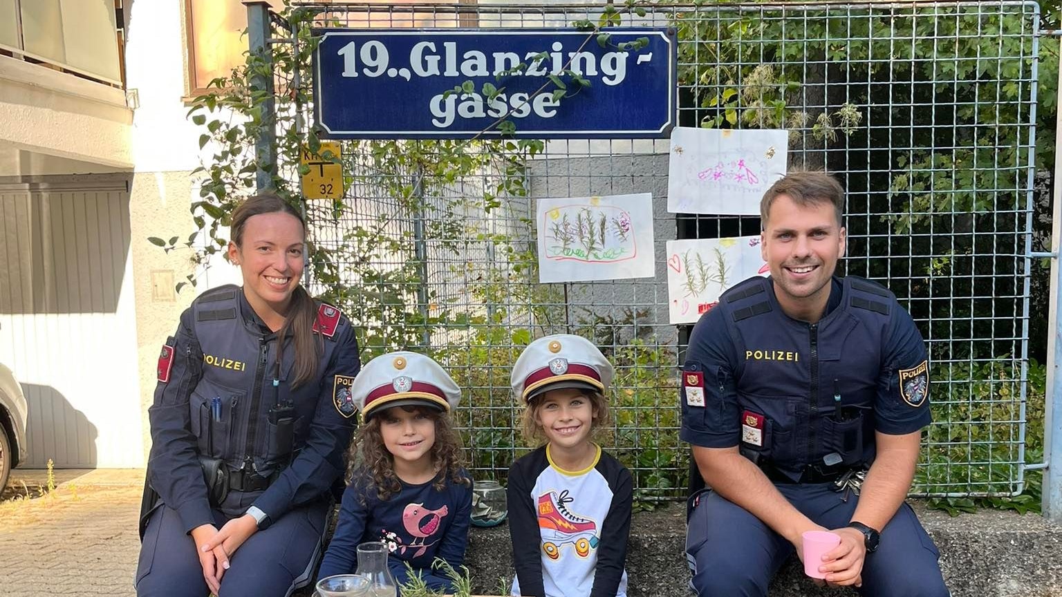 Die Beamten ließen es sich nicht nehmen, mit den "Jungunternehmerinnen" ein Glas Saft zu trinken.
