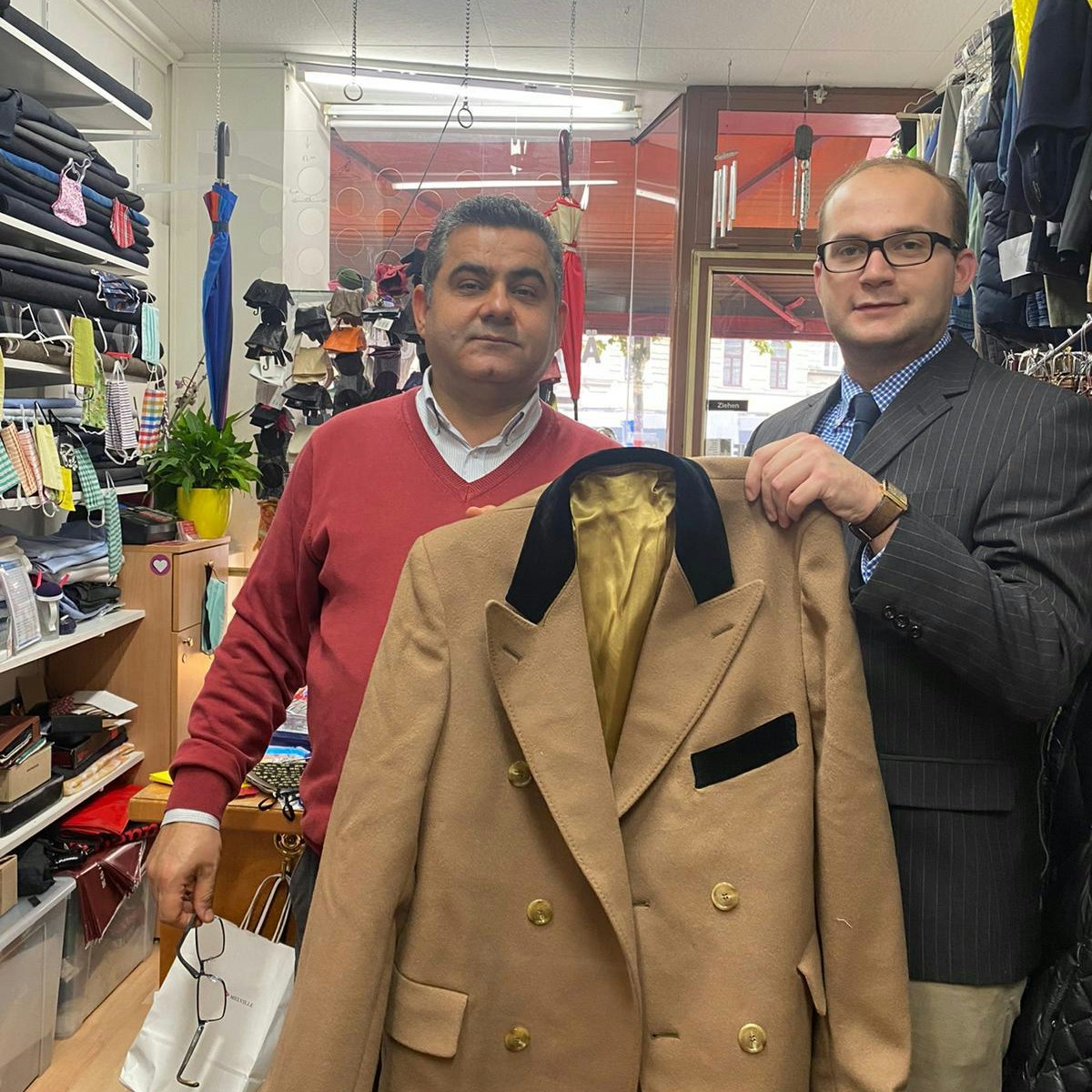Schneider Michael (l.), der Mantel (m.), der Käufer (r.)