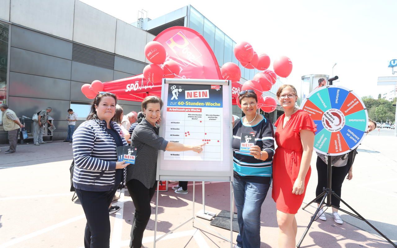 Am Montag warnten die Wiener SPÖ-Frauen vor dem Wiener Stadioncenter vor der, aus ihrer Sicht "verachtenden Frauenpolitik" der Bundesregierung (v.li: Frauensekretärin Nicole Berger-Krotsch, Nationalratsabgeordnete Gabriele Heinisch-Hosek, die Vorsitzende der Wiener SPÖ-Frauen Renate Brauner und die stellvertretende Bundesgeschäftsführerin der SPÖ Andrea Brunner).