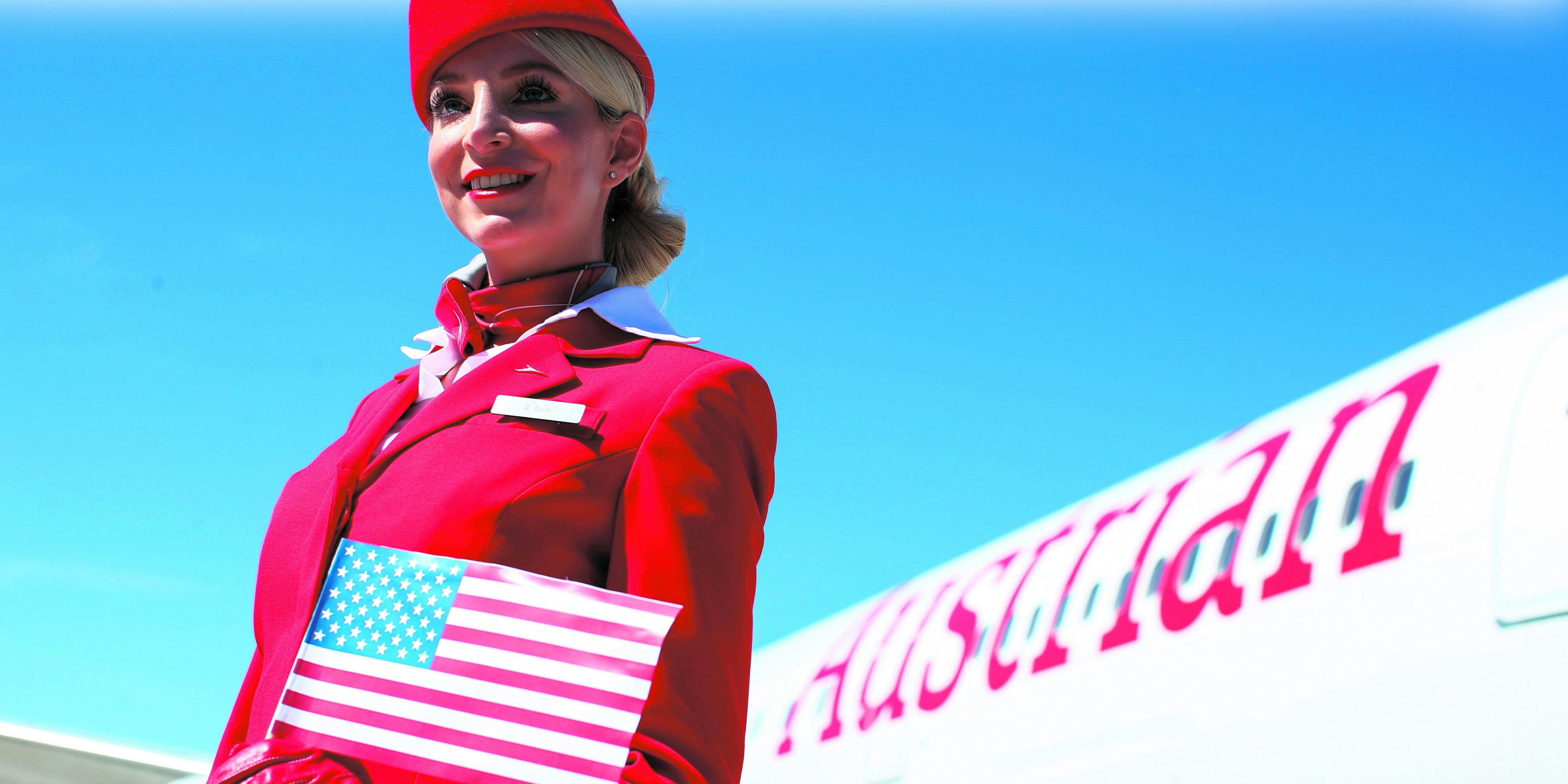 Eine der Stewardessen, die am 1. Juli Richtung New York abhoben.