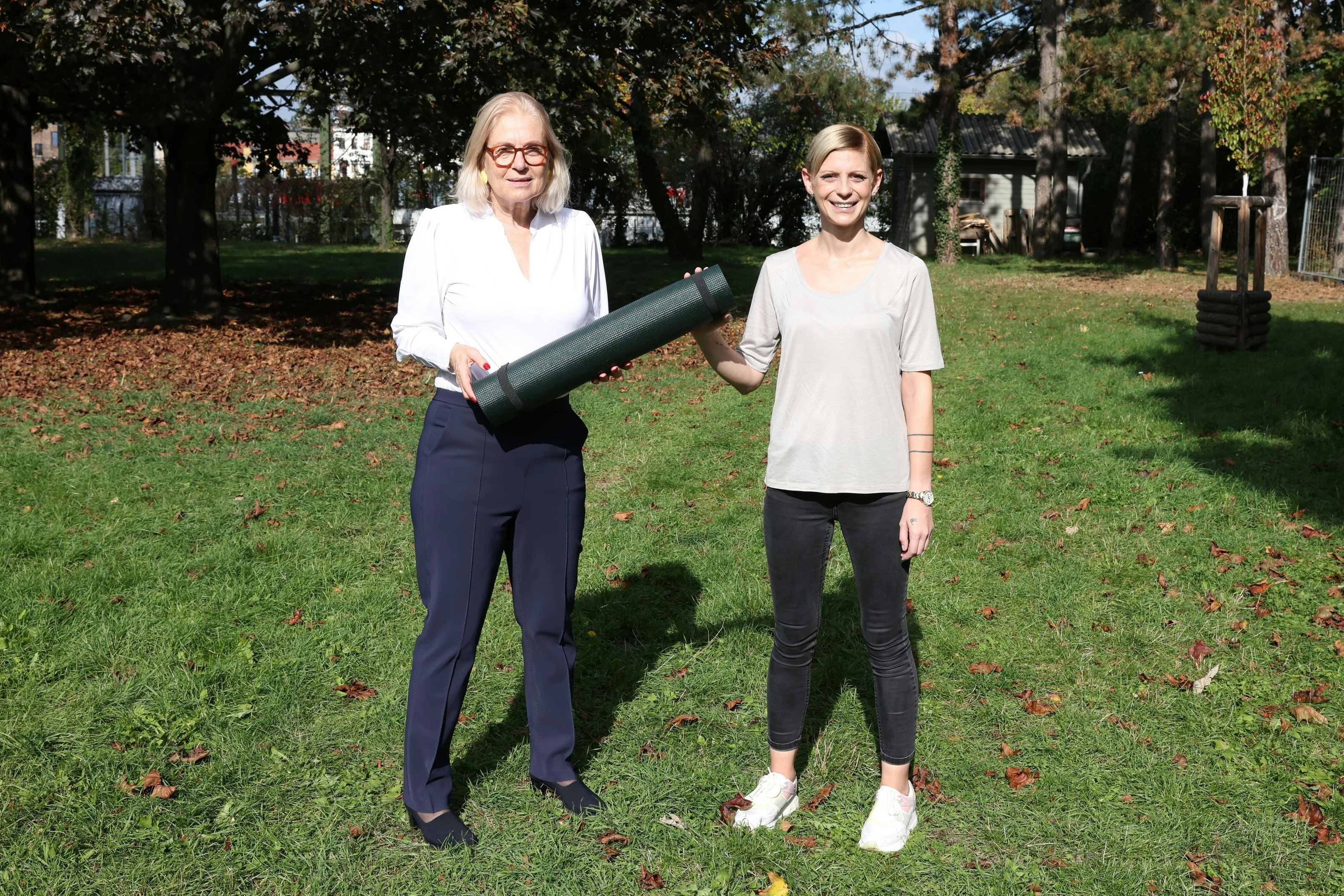 Der Samariterbund (im Bild Präsidentin Susanne Drapalik, li.) bietet Yoga für Obdachlose an. Sachspenden wie Yogamatten werden noch dringend benötigt.
