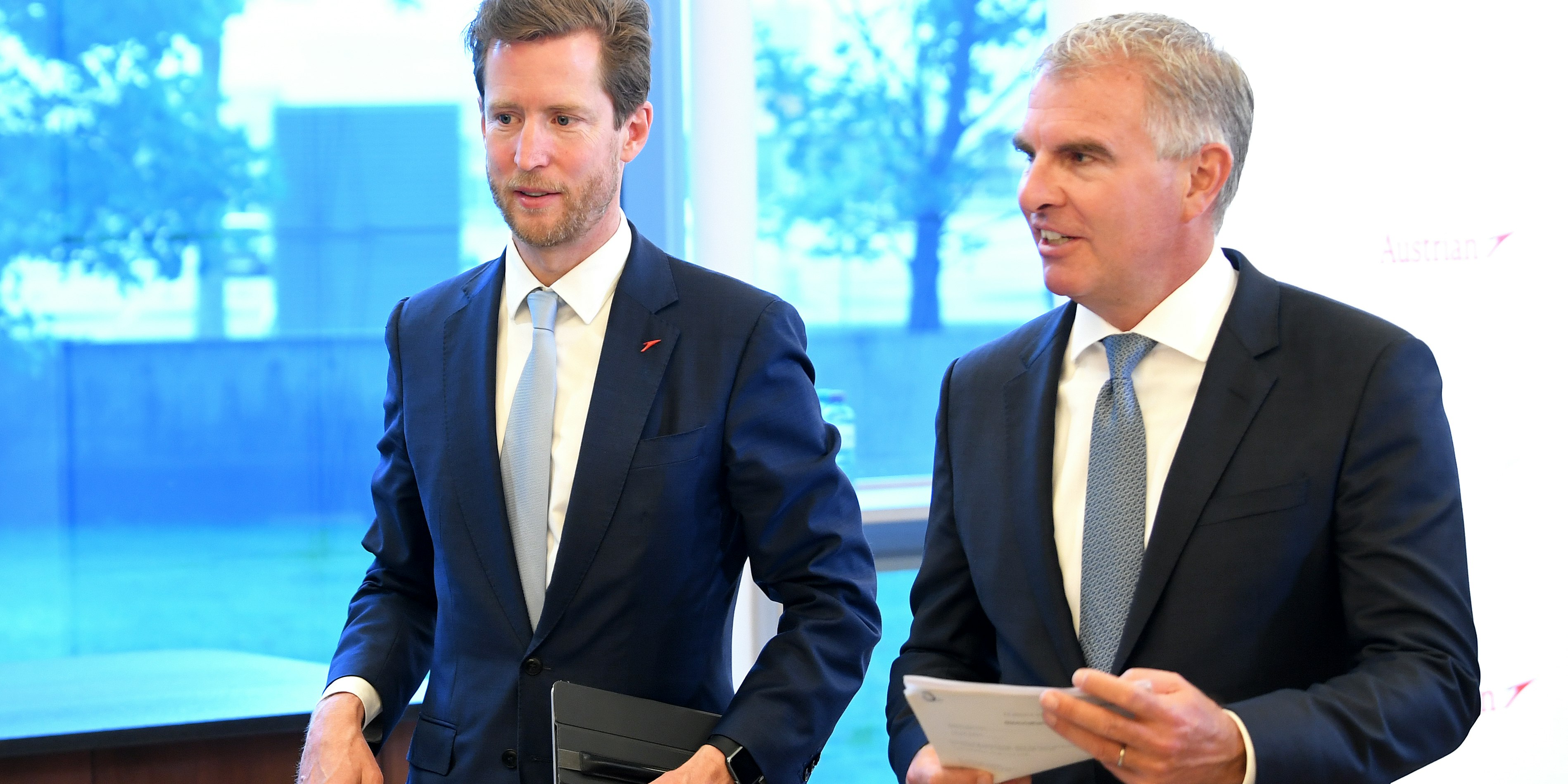 AUA-Chef Alexis von Hoensbroech und Lufthansa-Chef Carsten Spohr