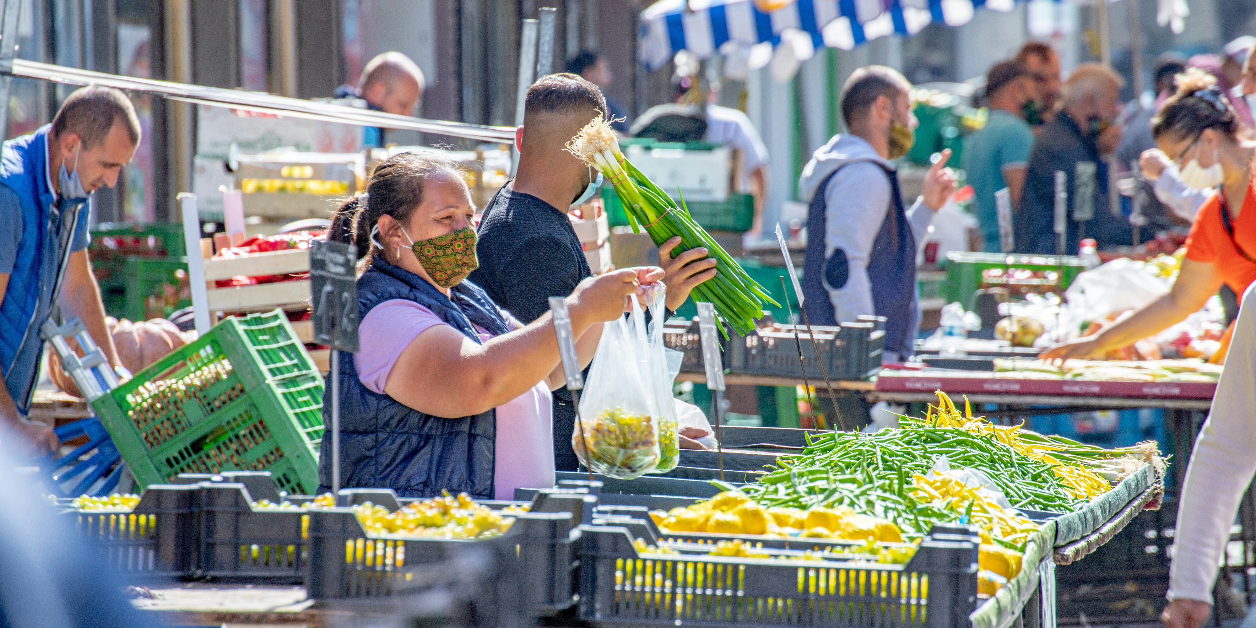 Aufgrund der steigenden Infektionszahlen gilt eine allgemeine Maskenpflicht auf Wiens Gemüse- und Lebensmittelmärkten (im Bild: Viktor-Adler-Markt).