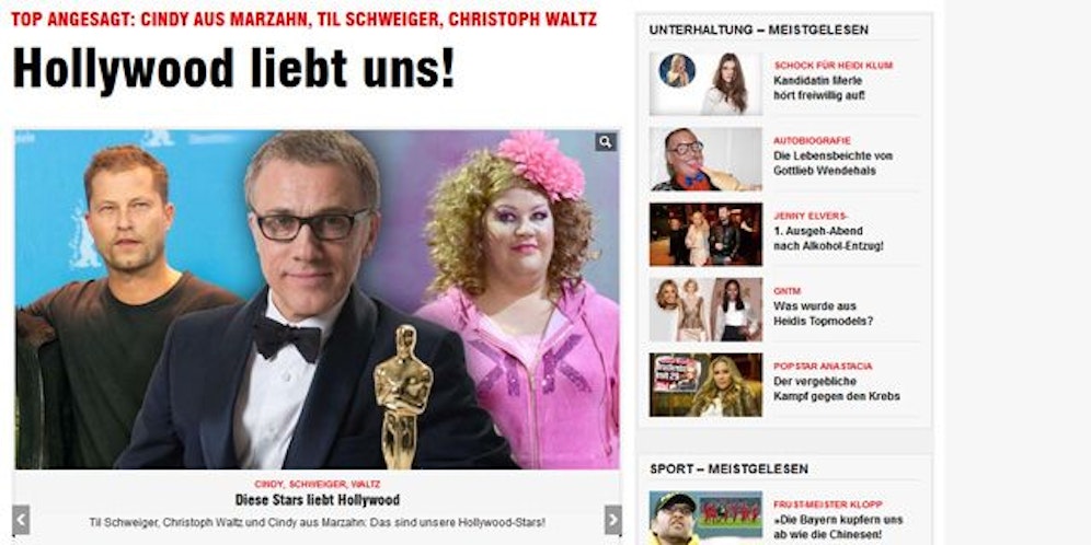 Das darf doch nicht wahr sein! Die "Bild"-Zeitung machte jetzt doch glatt unseren Oscar-Hero Christoph Waltz wieder einmal zum Deutschen. "Hollywood liebt uns" titelt das Boulevard-Blatt auf seiner Website - und darunter sieht man ein Bild von Waltz mit dem Oscar-Goldburschen!