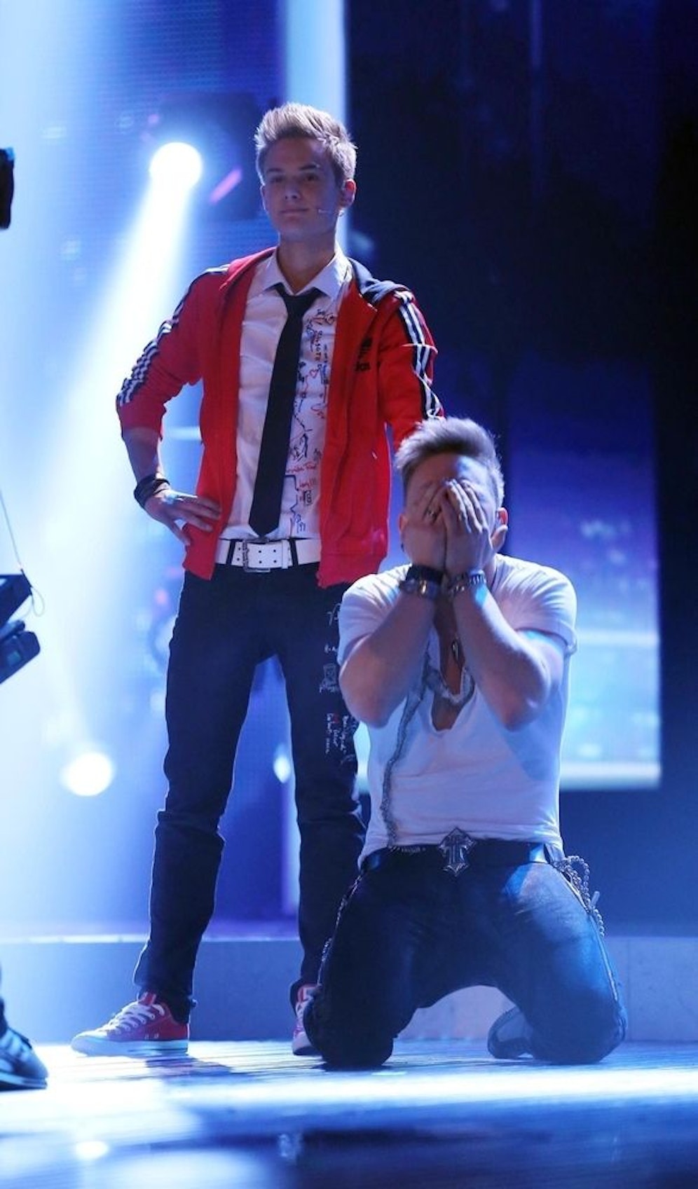 -Show sein Können mit dem Fastnachts-Klassiker "Viva Colonia" beweisen und hüpfte mehr grölend als singend auf der großen Showbühne herum. "Mit Singen hat das nichts zu tun", kommentierte der genervte Pop-Titan zurecht. Auch der frisch verliebte Erwin Kintop stand zum "Abschuss", denn laut Bohlen war sein Auftritt "eine echte Katastrophe". Doch er hatte Glück und Timo Tiggeler flog aus der Show.