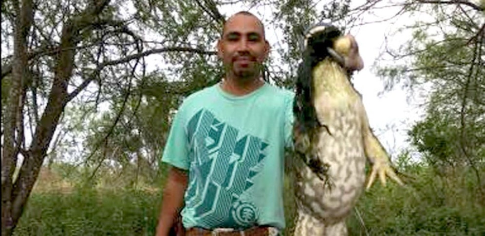 Bei der Jagd in der Nähe eines Fischteich im Süden Texas (USA) hüpfte Markcuz Rangel plötzlich ein gigantischer Frosch vor die Flinte. Der Waidmann fackelte nicht lange und drückte ab.
