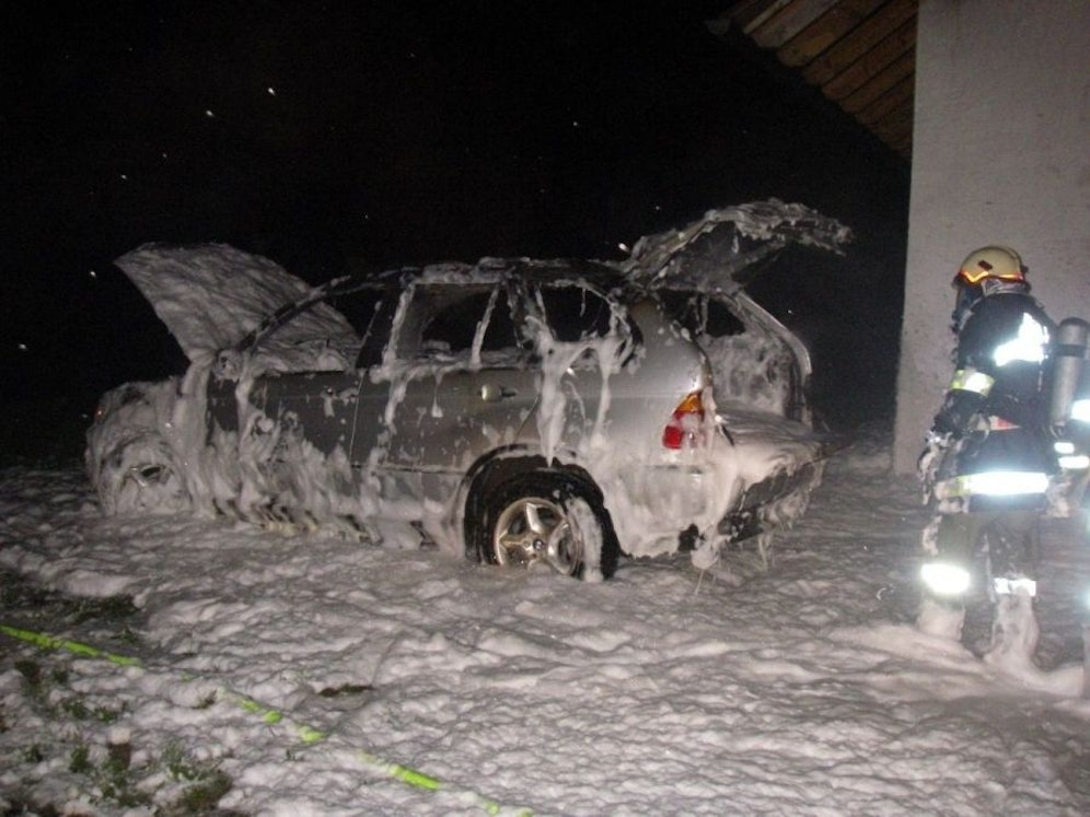 Der geschockte Besitzer alarmierte die Feuerwehr, die mit 20 Mann ein Übergreifen des Feuers auf das Wohnhaus verhindern konnte. Der BMW brannte komplett aus.