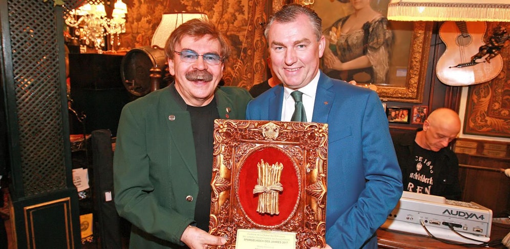 Über den Titel "Spargelfeinschmecker des Jahres 2017" freute sich gestern Abend "Steffl-Besitzer" und Heurigenkaiser Hans Schmid.