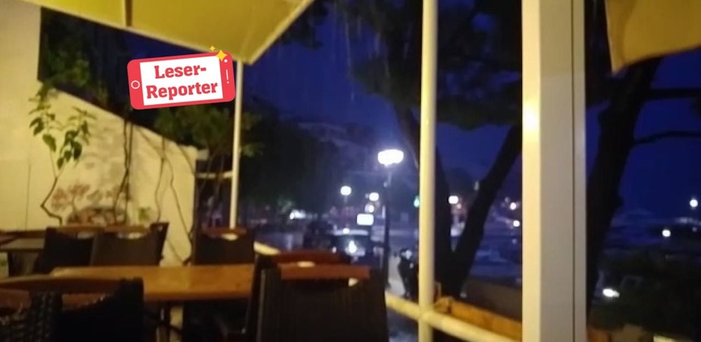 "Heute"-Leser Michael urlaubt derzeit mit seiner Lebensgefährtin an der kroatischen Küste in Brela. Als die beiden am Abend ihren Wolfsbarsch in einem Restaurant genossen, fing es plötzlich an sintflutartig zu regnen. Michael dachte zunächst das sei ein harmloses Gewitter: "Wir wollten das Unwetter eigentlich abwarten, doch nach zwei Stunden goss es immer noch in Strömen."