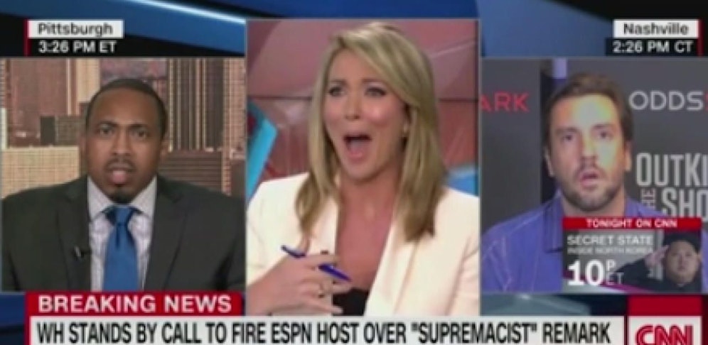 CNN-Moderatorin Brooke Baldwin lud zu diesem Thema zur Live-Diskussion. Unter anderem nahm Clay Travis, Radiomoderator bei Fox Sports daran teil. Er verteidigte Hills Aussagen und kritisierte das Verhalten von ESPN, denn er glaube an zwei Dinge: An den 1. Zusatzartikel und an Brüste ("First Amendment and boobs").