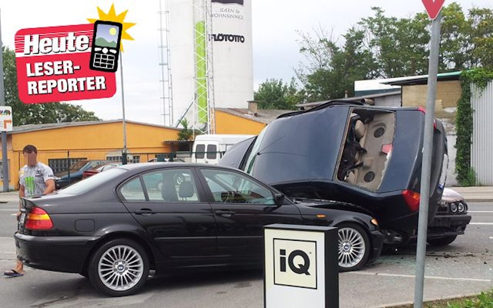 Leserreporter Billek Jürgen war dabei, als der "übermotivierte" Autofahrer viel zu schnell auf die IQ-Tankstelle auf der Bitterlichstrasse am Rande des Erholungsgebietes Wienerberg im 10. Bezirk einbiegen wollte. Mit der Erholung war es spätestens vorbei, als der Raser mit niedrigem Spritpegel viel zu spät bemerkte, dass ein Auto bereits in die Zufahrt eingebogen war. Ein zweiter Pkw verließ die Tankstelle just zu diesem unglücklichen Zeitpunkt.
