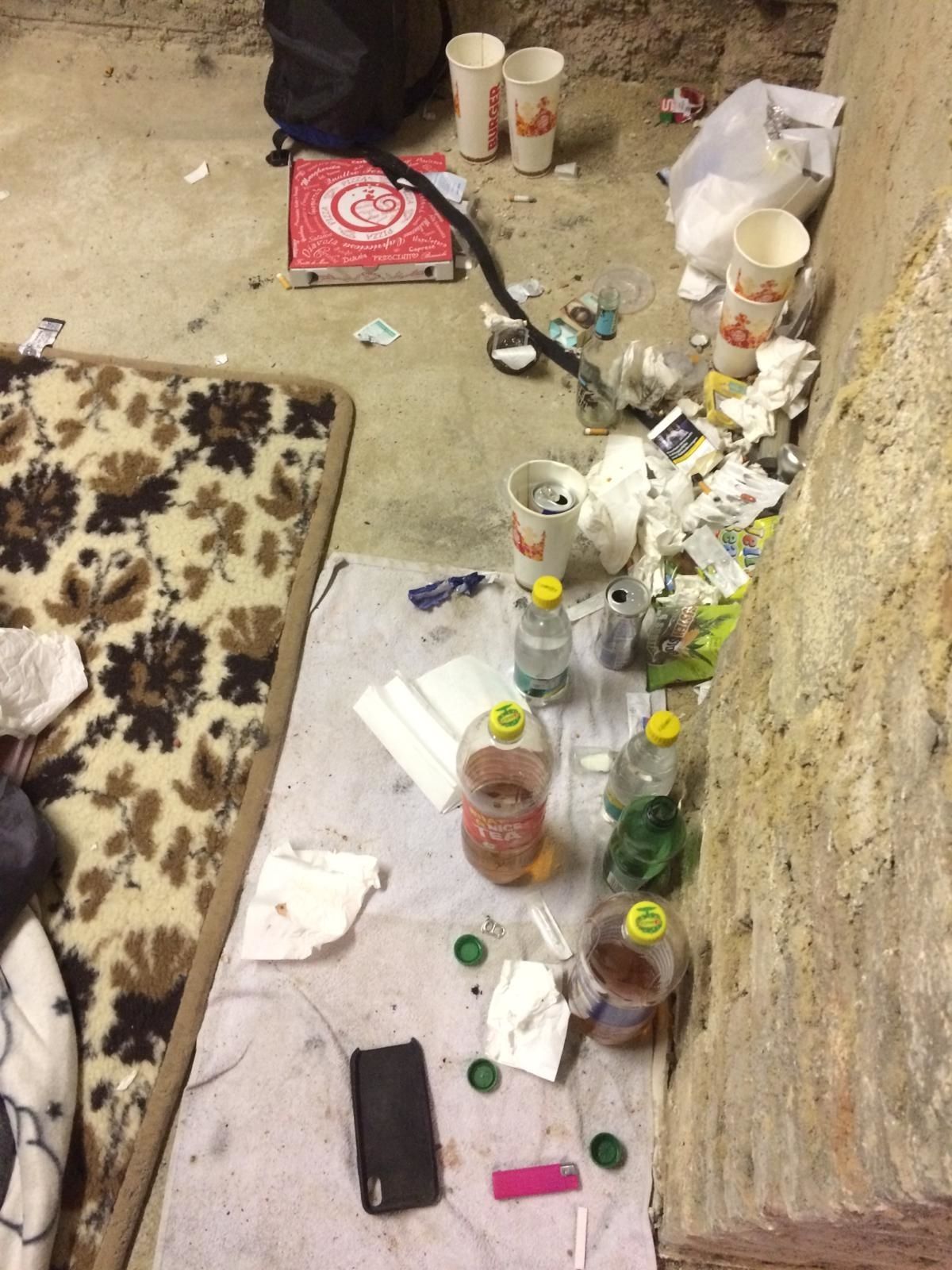 Bereits mehrfach fanden die Mieter im Keller, dem Heizraum und dem Fahrradabstellraum verlassene Schlafstätten, liegengebliebene Spritzen und gebrauchte Kondome. Auch die mit Fäkalien beschmutzten Räume sorgen für Empörung.