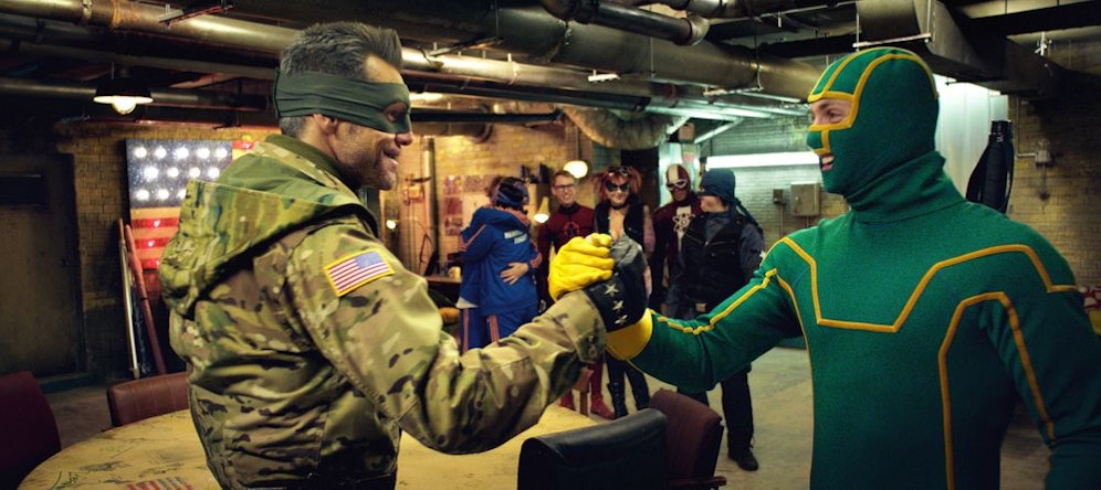 Humorlos und unmotiviert hat Regisseur Jeff Wadlow Motive aus dem Superheldengenre mit etwas Fäkalhumor aus billigen Teenieklamotten kombiniert. Und nicht einmal etwas trashigen Charme strahlt diese Fortsetzung aus. Der Zuschauer darf erneut miterleben, wie der unscheinbare Nerd Dave Lizewski (Aaron Taylor-Johnson) in sein giftgrünes Kostüm schlüpft und zum superstarken Kämpfer für das vermeintlich Gute mutiert. Hier kommt Jim Carrey ins Spiel. Als Colonel Stars and Stripes gibt er den Baseballschläger schwingenden Chef einer schrägen Truppe von Möchtegern-Helden, die das Gesetz in ihrer eigene Hand nehmen und mal so richtig aufräumen mit all dem Gesocks, das sich auf den Straßen tummelt.