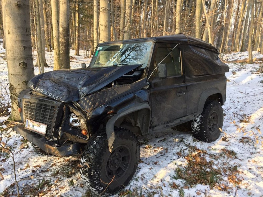 In einer Kurve kam der Fahrer des Offroaders von der winterlichen Fahrbahn ab, überschlug sich über die Längsachse, kam wieder auf die Räder und schlängelte sich, wie bei einem Slalom, zwischen den Bäumen durch. An einem der Baumstämme war dann aber Endstation.
