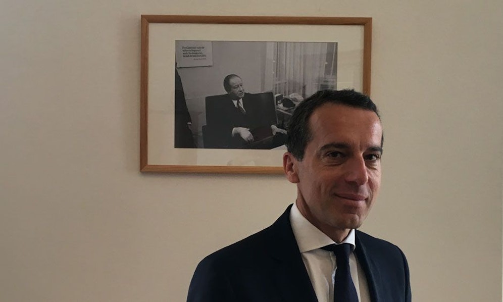 Ein Besprechungstisch, die Möblage eher resopalartig angelegt, aber vom Erker aus hat man einen herrlichen Blick aufs Rathaus. An der Wand ein Foto Kreiskys, in der APA gefunden, extra gerahmt. "Von Partei Richtung Bewegung" will Kern die SPÖ führen, mehr Mut müsse man haben, raus aus dem Saft, wieder "gestalterische Kraft" entwickeln, ein "Parteileben mit intellektuellem Anspruch" sei erstrebenswert.