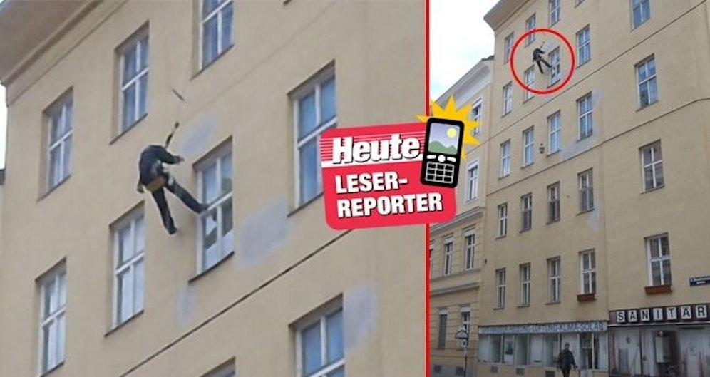 "Keine Absperrung, keine Baustelle, keine Warnschilder" sah Leserreporter Michael Bübl am Mittwoch in der Kundmanngasse, Ecke Geusaugasse. "Wer ist das, und was macht der Mann in luftiger Höhe mitten am Nachmittag?", rätselt er.