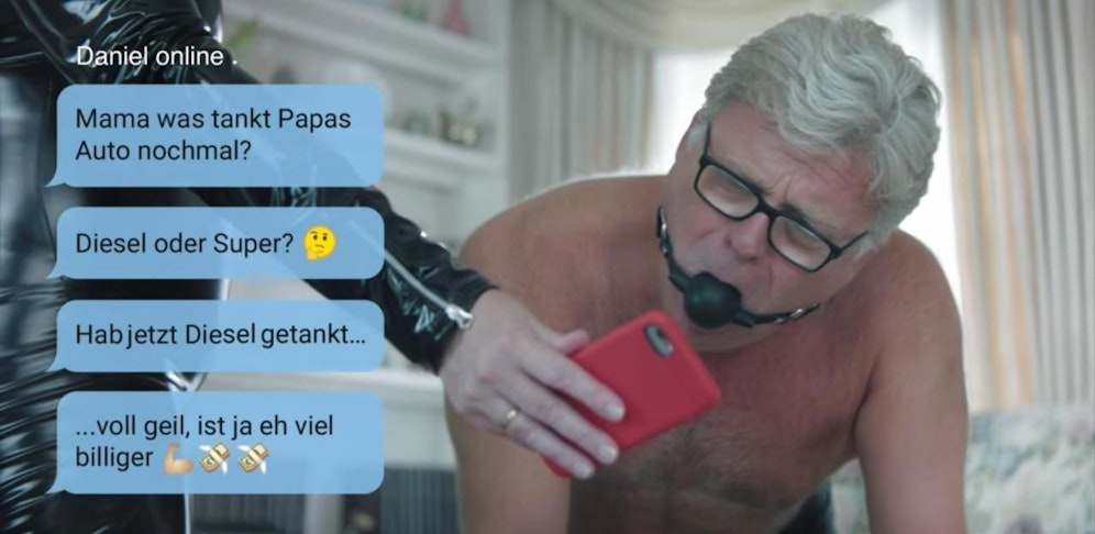 Besonders gelungen ist der Clip, der Papa und Mama beim Sadomaso im Wohnzimmer zeigt. Plötzlich will Sohn Daniel per SMS wissen, ob Papas Auto Diesel oder Super tankt, um dann prompt den falschen Kraftstoff einzufüllen. Der romantische Schlagabtausch ist ruiniert – hätte Daniel mal lieber beim ADAC nachgefragt