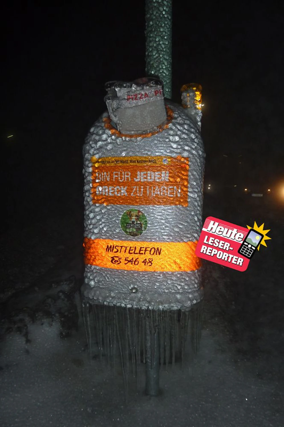 Leserreporter Martin Langer schickte uns ein Foto von einem wunderschön eingeeisten Mistkübel am Kahlenberg. Natürlich wären wahrscheinlich auch die Ostösterreicher mit zweistelligen Plusgraden zu Weihnachten zufriedener gewesen, doch dieser Anblick lässt das momentane "Sauwetter" kurzzeitig vergessen.