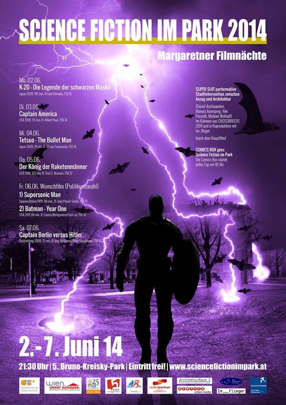 Vom 2. bis zum 7. Juni laufen im Wiener Bruno-Kreisky-Park die Superhelden auf. Im Rahmen des "Science Fiction im Park" werden an fünf Abenden, jeweils um 21.30 Uhr, Sci-Fi-Filme gezeigt. Der Eintritt ist frei. Den Startsschuss liefert am 2. Juni die japanische Produktion "K-20 Die Legende der schwarzen Maske".