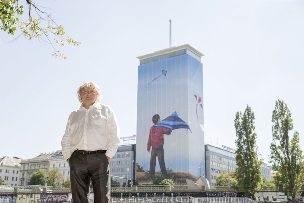 "Sorgenfrei" heißt das Bild des tschechischen Künstlers Ivan Exner, das nun den Ringturm ziert. "Es wäre großartig, wenn der Betrachter neben dem monumentalen Format auch die Monumentalität des Themas entdeckt – die Kindheit", so Exner zu "Heute". "Für mich bedeutet es sehr viel, dass im Herzen Wiens ein Bild von mir, in Form einer überdimensionalen Kunstinstallation, hängt. Das ist so ähnlich wie ein Jackpot".